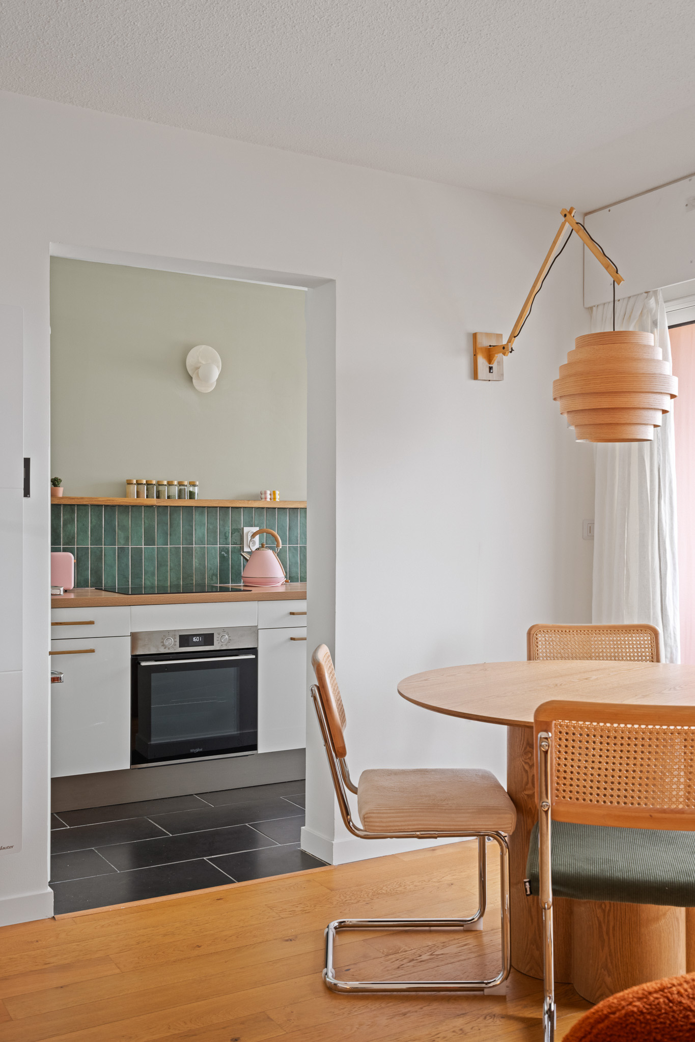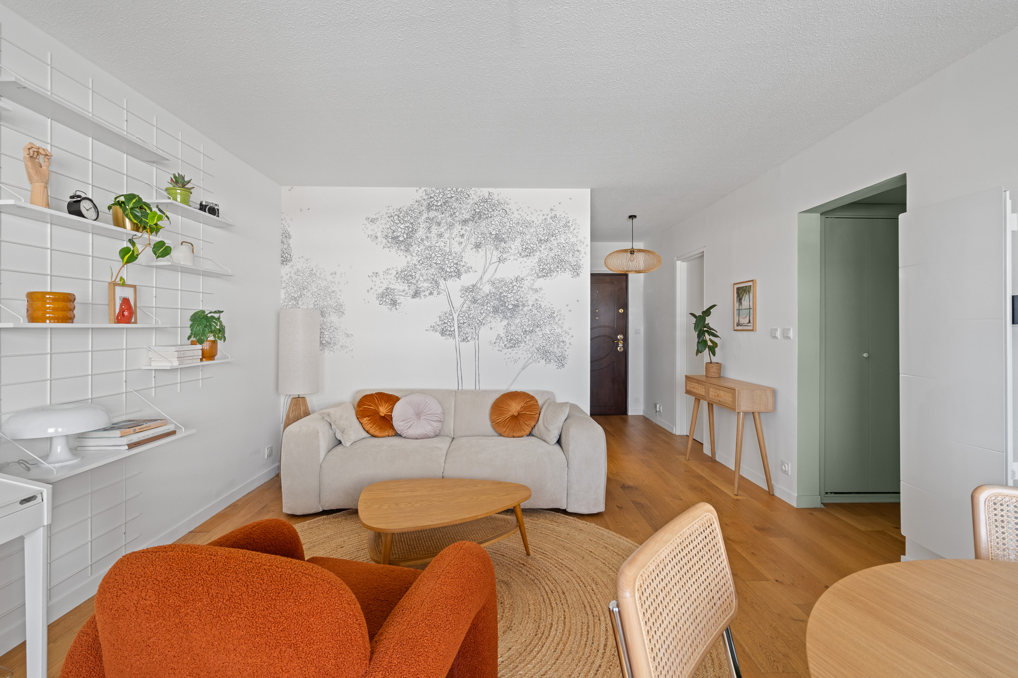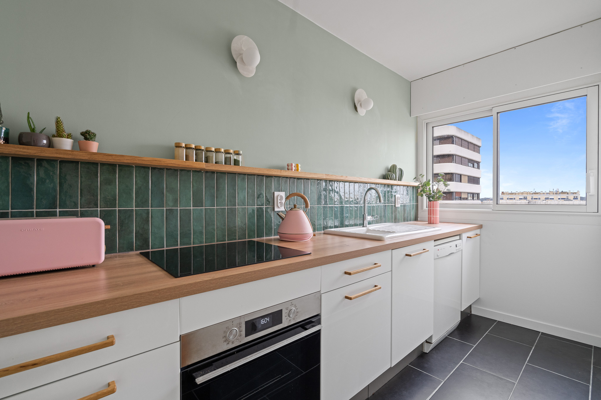 L’ensemble de l’appartement a été entièrement rénové : remplacement des menuiseries, modernisation des équipements, reprise complète des peintures et des revêtements. La cuisine a été revisitée avec un plan de travail en bois et des détails contemporains. Chaque espace a été optimisé pour offrir confort, fonctionnalité et esthétisme au quotidien.