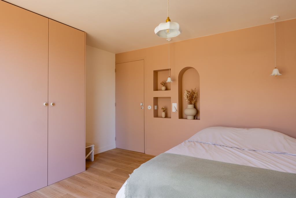 Juliette Gauchez, architecte d’intérieur à Lille, a imaginé un aménagement complet de l’étage d’une maison située à proximité de la métropole. L’objectif : créer une suite parentale élégante, une chambre d’enfant douce et deux salles de bain cohérentes, tout en maximisant la lumière et les volumes.