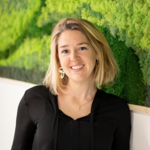 La première étape a consisté à poser un sol en vinyle Gerflor effet parquet sur la dalle en béton fissurée, un choix pratique pour l’entretien et adapté aux contraintes de la porte d’entrée automatique. Le défi était de créer deux espaces de travail ouverts, accueillant du public tout en préservant l’intimité. Pour délimiter les espaces, Hélène a installé des bacs sur mesure en forme de L, intégrant des végétaux stabilisés de chez Écrin Végétal. Ces végétaux, esthétiques et écologiques, ne nécessitent aucun entretien, répondant ainsi au besoin du client.