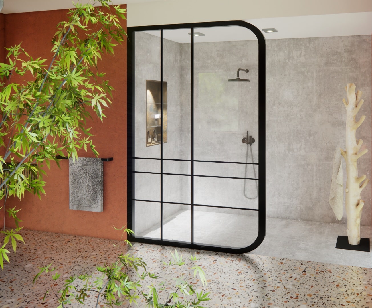 L’élément phare de cette salle de bains reste sans conteste la baignoire noire Wave en fonte minérale signée Berstein. Placée sur son estrade en béton, elle est un point focal dans la pièce. Sa forme organique, à la fois contemporaine et sensuelle, est soulignée par une suspension aux lignes arrondies, qui accompagne le mouvement tout en douceur.