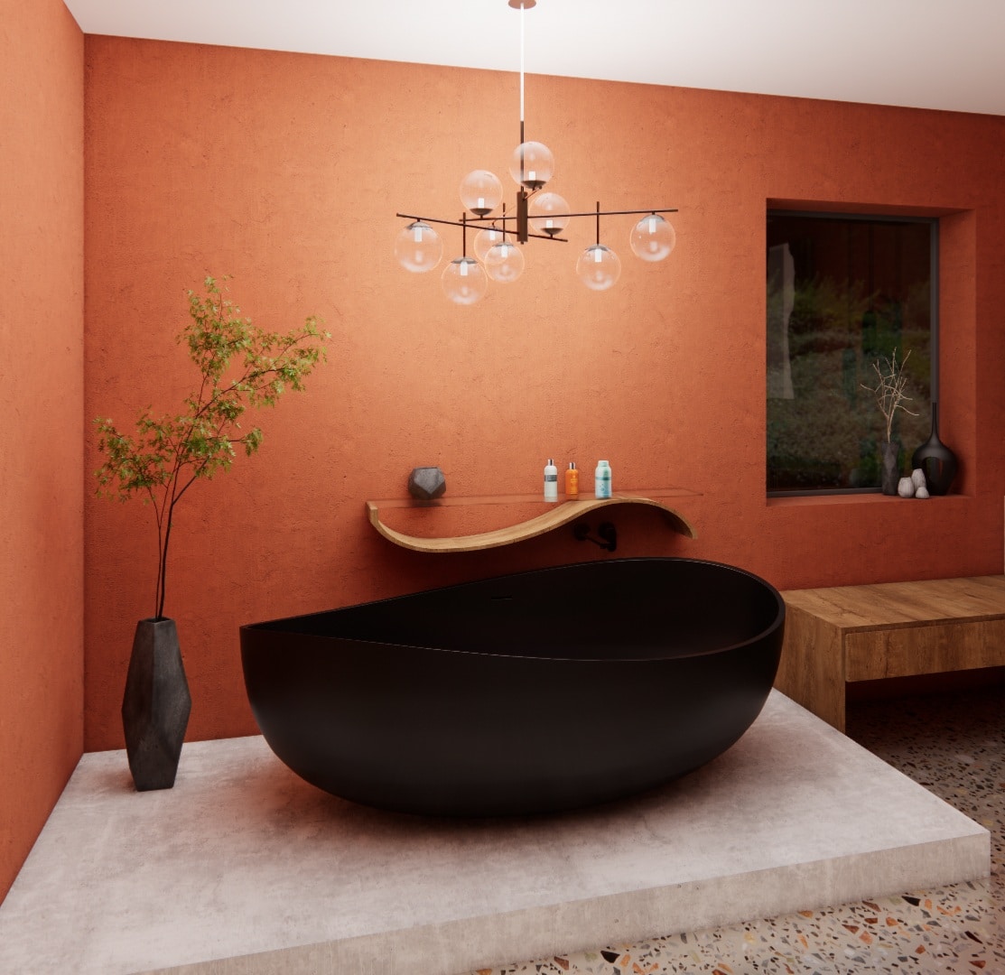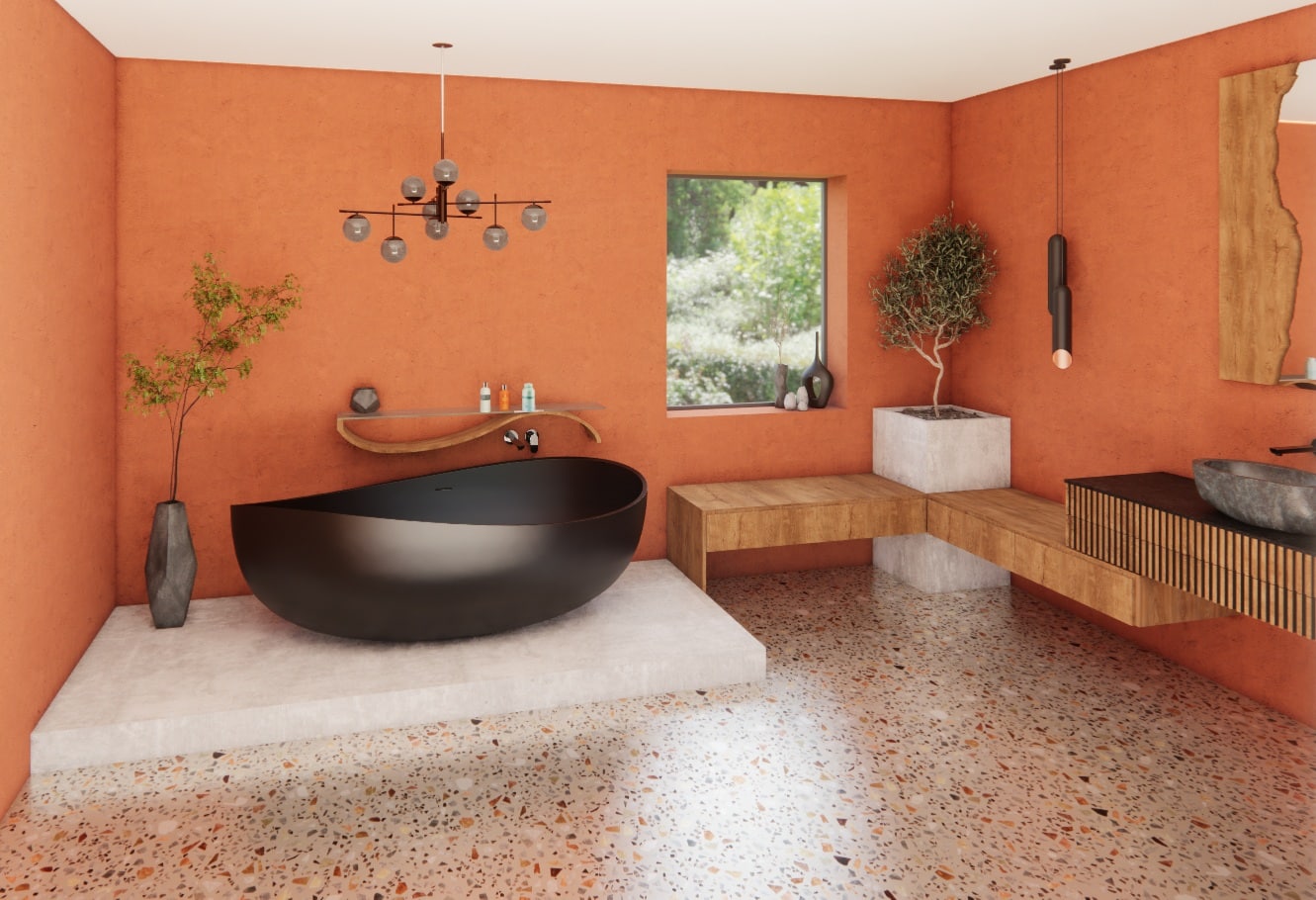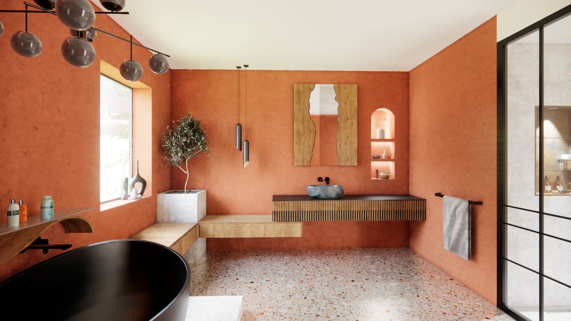 Les propriétaires, d’origine méditerranéenne, souhaitaient un lieu de bien-être à leur image, capable de faire dialoguer les styles. Notre décoratrice d’intérieur a su capter cet esprit en proposant un univers chaleureux, où l’enduit à la chaux terracotta recouvre les murs pour créer une enveloppe douce et solaire.