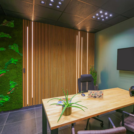 Le cœur du projet : un îlot central convivial, imaginé pour devenir le point de rencontre du quotidien. L’originalité ? L’alimentation électrique est acheminée par le plafond, dissimulée dans un habillage en tasseaux de bois. Autour de cet îlot, des tabourets de bar invitent à partager un repas ou un café en toute simplicité.