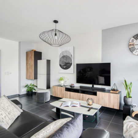 Les propriétaires souhaitaient repenser totalement l’espace de 75 m² pour lui donner l’esprit convivial d’un loft tout en préservant des zones plus intimistes. Le parquet flottant, installé sur toute la surface, apporte la chaleur naturelle du bois et une harmonie visuelle douce et accueillante.